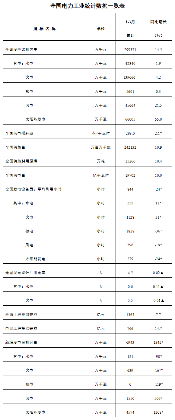 4月22日,國家能源局發(fā)布1-3月份全國電力工業(yè)統(tǒng)計(jì)數(shù)據(jù)。