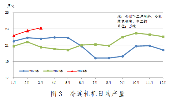 中厚板軋機(jī)、熱連軋機(jī)、冷連軋機(jī)日均產(chǎn)量變化見(jiàn)圖1、圖2、圖3。