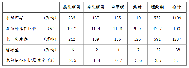 4月下旬,5大品種鋼材社會(huì)庫(kù)存環(huán)比全部下降,其中螺紋鋼和線材分別為減量和降幅最大品種,具體見(jiàn)下表。