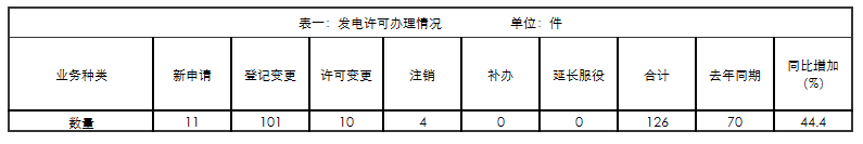 (一)4月份發(fā)電許可辦理情況 ?????????單位:件