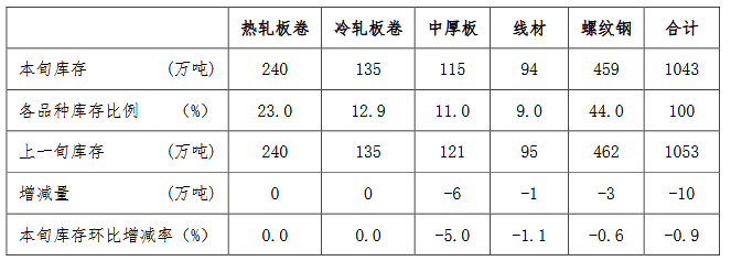 6月中旬,5大品種鋼材社會庫存環(huán)比波動(dòng)不大,其中中厚板、線材、螺紋鋼環(huán)比有所下降,熱軋、冷軋板卷環(huán)比持平,具體見下表。
