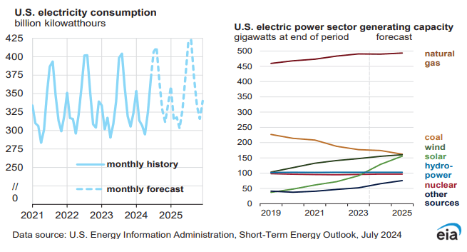 美國能源信息署(EIA)7月9日發(fā)布的最新《短期能源展望》報(bào)告顯示,預(yù)計(jì)2024和2025年,美國電力需求將連續(xù)創(chuàng)下歷史新高。