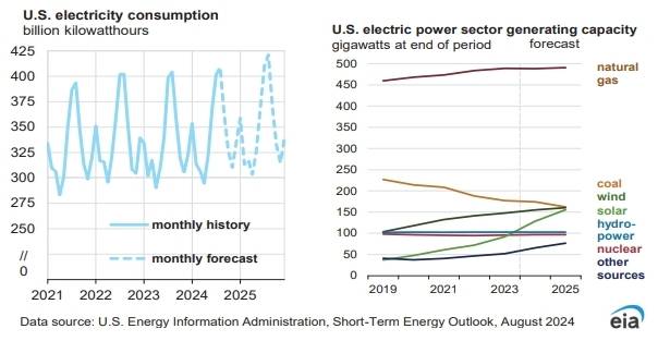 2025年,美國電力需求預(yù)計(jì)將進(jìn)一步增加至41760億千瓦時(shí),同比增加1.7%,同樣低于前一月預(yù)期值41980億千瓦時(shí)。