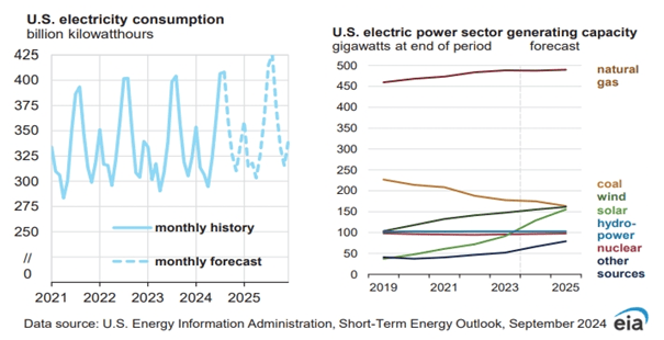 美國能源信息署(EIA)9月11日發(fā)布的最新《短期能源展望》報告顯示,2024和2025年,美國電力需求預(yù)計將創(chuàng)歷史新高。