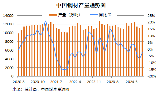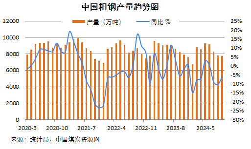 國家統(tǒng)計局數(shù)據(jù)顯示,2024年1-10月份,全國焦炭、粗鋼、生鐵產量同比延續(xù)下滑,鋼材產量同比轉正。具體來看:
