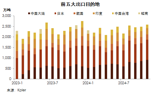 向韓國(guó)出口煤炭251.68萬(wàn)噸,環(huán)比降16.84%,同比降27.38%;向中國(guó)臺(tái)灣出口157.42萬(wàn)噸,環(huán)比降27.49%,同比增1.38%。