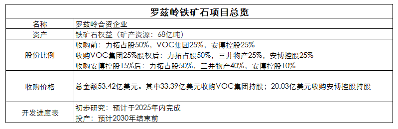 作為交易的一部分,三井物產(chǎn)將以33.4億美元的價格收購VOC集團在羅茲嶺的全部25%的權(quán)益,并與安博控股有限公司(AMB Holdings)簽署了意向協(xié)議,以20億美元的價格收購15%的股權(quán)。安博控股將保留該項目10%的權(quán)益。這些交易仍需獲得監(jiān)管部門的批準和成交條件。